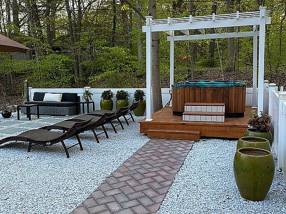 - Exterior Features: Deck, Patio, OpenPrch, HotTub, Barbeque, FencVnyl, Pergola