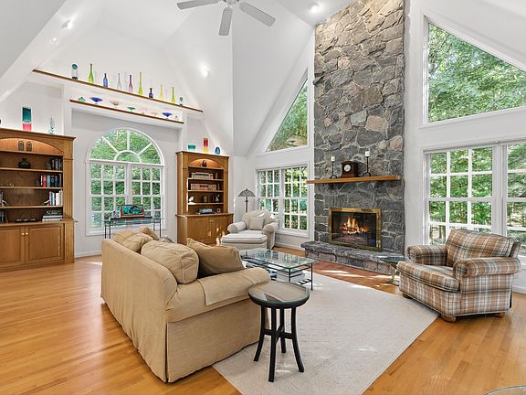 Rental Registration #: 24-154 This is the perfect summer getaway home. Nestled privately at the end of Bull Run sitting on 2 acres of lush, well manicured land with large back patio for entertaining. Just past the beautifully landscaped fish pond, a bluestone pathway leads to the home's entrance. Inside, natural light streams in and highlights the open floorplan and cathedral ceilings. The first floor includes, an open eat-in kitchen, living and dining, two bedrooms and one bathroom. The primary bedroom is located upstairs featuring high ceilings, an en-suite bathroom with double sinks and a separate soaking bathtub and walk-in shower, and double closets. Directly off the primary there is a private mahogany balcony, which overlooks extensive landscaping. Private and prestine, this rental is ready for you to enjoy!