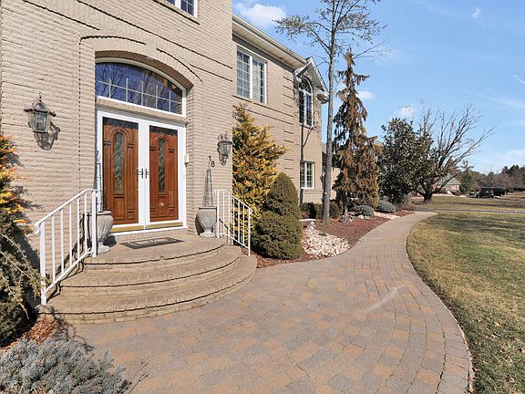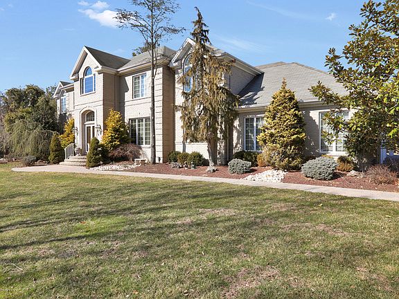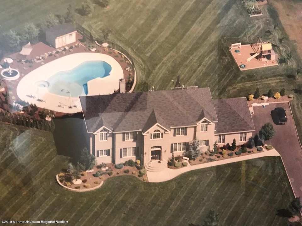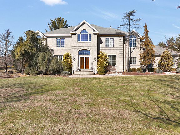 Majestic Custom Colonial located in the heart of beautiful Holmdel! This stunning 5 Bedroom 3.2 bath home is located on over 1 acre of professionally landscaped, neatly manicured property in the highly sought after Vineyards. Grand two story foyer entrance with custom wood floor inlays and impressive staircase. This home features a stunning 2 story great room which includes double sided fireplace surrounded by custom built-ins and a spectacular view of the rear patio, in ground pool and the park like property. Custom designed, oversized kitchen includes wood carved cabinetry, granite countertops and high end appliances. Entertainers Dream! Beautiful formal living room and guest suite with full bathroom complete the perfectly constructed 1st floor. Second level features