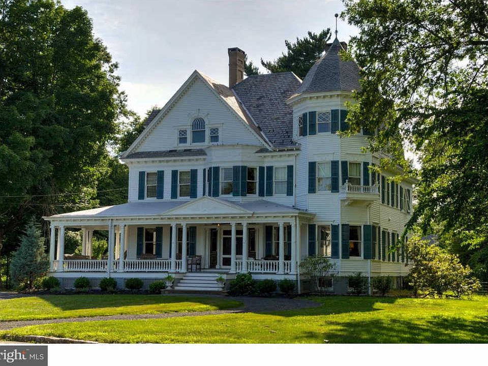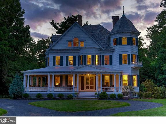BEAUTIFULLY UPDATED, THIS STUNNING HOME IS TRULY ONE OF A KIND! Lovingly renovated with impeccable attention to detail, this home offers the grandness and majestic allure of a historic home with all the amenities and conveniences of a modern home. A circular driveway and wide graceful steps lead to a charming front porch and allude to the grandness that lies within. Double doors open to the stunning grand foyer with original fireplace and an imposing chestnut staircase. Original arched and column entrances showcase the spacious light filled parlor, library and formal dining room, all with fireplaces and walls of windows. A butler's pantry leads to the stunning, completely redone kitchen with custom cabinets, handmade tile backsplash, terrra cotta floor with radiant floor heat, granite counter tops, butcher block center island and all high end stainless steel appliances. Ascend the grand staircase to the second floor where even more magnificent rooms await. There are five beautiful rooms and three bathrooms on this floor, including a brand new state of the art bathroom and laundry room. The third floor offers another five spacious, light filled rooms. The outside offers a circular driveway, back patio, detached garage, carport, barn, and three fields large enough to host weddings! 10 minutes from the Riverline Train, Septa or NJ Transit make commutes to NYC or Philadelphia easy. Also close to major highways, shopping and entertainment. WITH 18 LIGHT FILLED ROOMS, STUNNING KITCHEN AND BATHROOM UPDATES, GRACEFUL ARCHES & ORIGINAL FIREPLACES, A ROMANTIC FRONT PORCH, ORIGINAL CHESTNUT WOODWORK AND STAIRCASE, MULTIPLE OUT BUILDINGS AND THREE LARGE FIELDS, THIS FULLY RENOVATED STUNNING, HISTORIC HOME IS GREAT FOR TODAY'S SOPHISTICATED, WORLDLY PURCHASER WHO APPRECIATES A MODERN HOME SET IN TIMELESS ELEGANCE. GREAT FOR LIVING, ENTERTAINING OR YOUR OWN GENTLEMAN'S FARM!