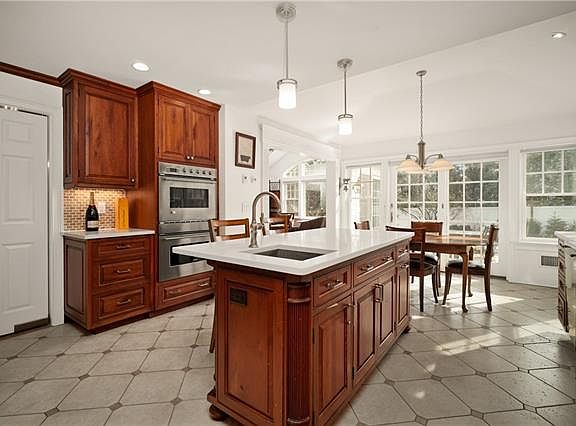 This exceptional, custom designed home in Milton Point features the finest finishes, 4 Bedrooms/4 Baths, hardwood floors throughout, a gourmet kitchen - complete with stainless steel appliances, new quartz counter tops, a spacious center island and sliding glass doors from the breakfast room leading to the outdoor bluestone patio and level, landscaped yard. The first level offers an open concept floor plan with a sun filled living room adjacent to the formal dining room - ideal for entertaining. The family room features a coffered ceiling. The partially finished lower level is renovated and provides great space for recreation and entertaining. Ample closets and storage are abundant throughout this home. Meticulously updated with attention to detail, 16 Byrd Street boasts quality luxury construction with all the amenities of today's discerning buyer. Award winning Rye City School District. You will love the convenience of this location - close to town, schools, parks, shopping, restaurants, highways and the Metro North Train. This Rye City home is not to be missed!