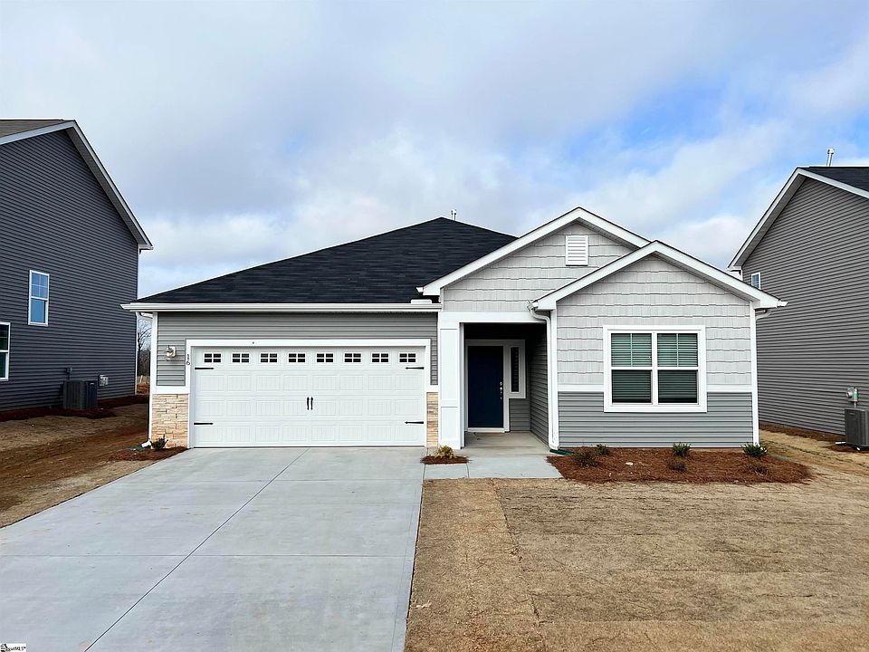 This charming Harper plan by Cothran Homes offers understated elegance with relaxed style inspired by our Hampton curated design. This 3 bedroom, 2 full bath includes an open kitchen with lovely Cane Sugar white shaker style cabinets, center island, Oyster White granite countertops, satin brass hardware, undermount stainless single bowl sink and under cabinet LED lights. GE stainless steel appliances included gas range, over the range microwave, dishwasher and refrigerator. Beautiful 5” wide Polaris Wild Dunes luxury vinyl plank floors throughout main living areas and Shaw Midway Plaza Pebble Creek carpet with 8lb pad in bedrooms. A cozy window lined living room with gas fireplace and faux white blinds makes for the perfect space to grab your favorite book and kick back for a relaxing read. First floor owner’s suite with attached bathroom, soaking tub -shower, Cane Sugar white dual sink vanity with New Venetian Marble countertop and attached walk-in closet. Laundry room includes hook up for washer /dryer and shelving for all your laundry accessories. Spacious guest bedrooms with lots of closet space. Work from home or want a zen den... easy enough to convert one of those bedrooms into the extra space you have always wanted. Last but not least, enjoy sitting outside on the rear patio and take in a bit of nature.
