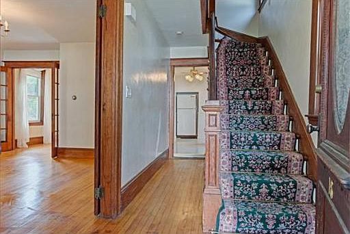 CHARMING home set on dead end street with LOTS of potential. Large living room with hardwood floors and french doors opens to a spacious bright dining room with bay window, built-ins and hardwood flooring. Three good size bedrooms with walk-in closets and hardwood flooring, neutral decor, and ample storage. LEVEL side yard with expansion potential and good size storage shed. Convenient to major routes and shopping. Public water and sewer. Home being sold "AS IS".