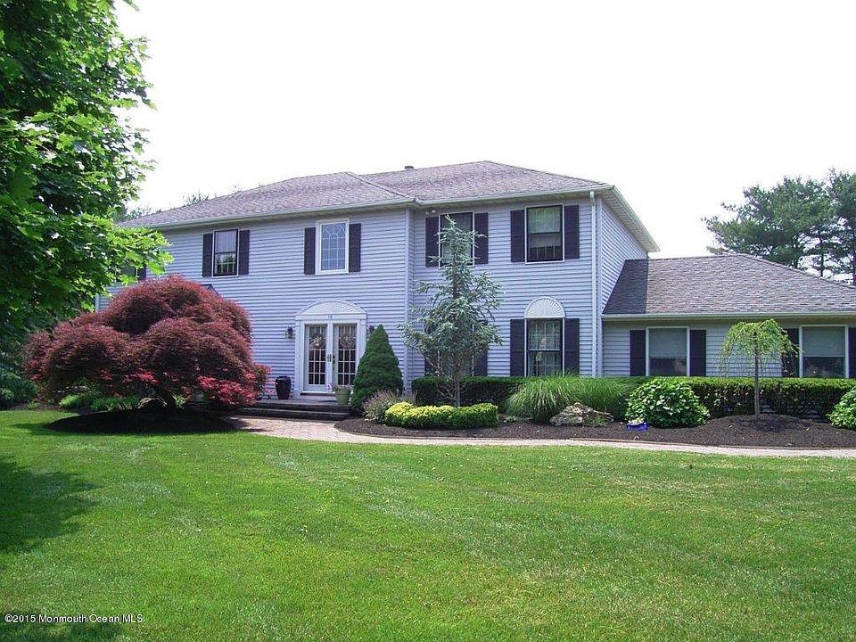 Meticulously maintained 4BR/2.5BA CH colonial in desirable Holmdel neighborhood. Double door entry to 2 story Foyer. Large Living & Dining Rooms w/ wood floors & decorative molding. Custom EIK features cherry cabinetry, limestone counters, tile backsplash, Subzero Refrigerator. Center island has 2 refrigerator drawers & wine cooler. Two sided gas FP connects EIK to Family Room. First floor also provides half bath & Laundry Room. Upper level level offers Lg Master suite highlighted by beautifully renovated Master bath w/custom double vanity, jetted tub & separate shower plus 3 more bedrooms & 2nd full bath. Outside, professionally landscaped yard features Trex deck w/ gazebo, refurbished gunite swimming pool w/ spa, winter pond views. Natural gas home generator. Top rated Holmdel schools!