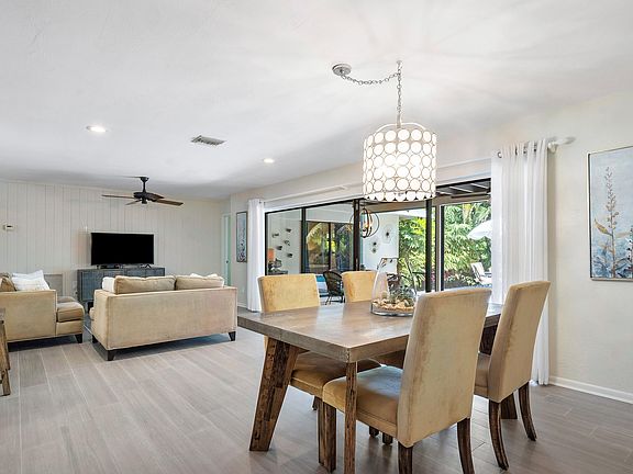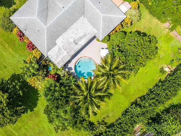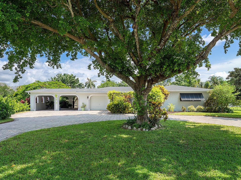 This lovely gem sits on a corner lot of nearly 1/2 an acre. Surrounded by mature and lush landscaping this home has it all! Fenced for privacy, a huge backyard offers two sheds, a monarch butterfly garden, stone accent flower beds, palm trees and a Clusia hedge. Private inground pool with sitting ledge surrounded by an open patio, palm trees and beautiful foliage for additional seclusion. The roof was recently replaced in Dec 2016 with 30-year architectural shingles. The roof system is cedar wood with tongue-in-groove roof deck planks, originally built to support concrete tiles. The roof system is strapped to the house's concrete block walls. The interior offers a newly remodeled kitchen with white shaker style cabinets, stainless steel appliances and marble countertops.