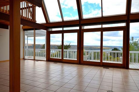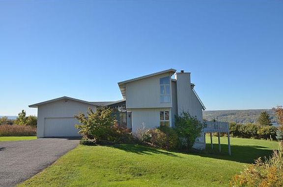 Stylish custom contemporary deck home with panoramic views of Cayuga lake. Located at the end of a quiet cul-de-sac in LakeWatch. This airy home offers abundant natural light, soaring cathedral ceilings, open floor plan, lovely mahogany woodwork & walls of windows to magical lake views. The wraparound deck is perfect for summer entertaining... Three levels of living space including a garden level guest suite. Main floor study and 2 fireplaces. Minutes to Cornell University, Lansing Schools and Myers Park.