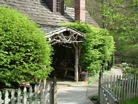 Colorful and eclectic, built in 1850, this unique home with generous artistic details, beautifully restored, cannot be duplicated. The fenced 8.95 acres and gated entry add intrigue to this private, magical setting. The home itself has been lovingly styled. From the artistic covered entry to the barn sided den with French doors, nothing but charm. The master suite has its own bathroom, built in bookshelves and access to the screened porch which is covered in wisteria. The living room with the brick fireplace is a great place to gather. The dining room off the kitchen peeks through to the sun room. The kitchen is truly country and eclectic. The gazebo outside the sunroom on the wraparound boardwalk is great for those late summer afternoon sundowners. The outbuildings include a 2 story Gazebo high on a hill, a barn complex with sheep stalls, a chicken coop, a one car garage, a potting shed, a loft and a wood shed.