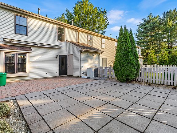 Welcomed by a covered entryway, this northeast facing, tastefully renovated three bedroom, two and a half bathroom end unit townhome offers modern living with plenty of natural light. The main floor features a large living room, perfect for entertaining, and an eat-in kitchen with stainless steel appliances, granite countertops, ample cabinet space and a peninsula with additional seating space. Enjoy your fenced in backyard patio, ideal for outdoor relaxation. A half bathroom completes the first level. Upstairs, the owner's suite features a renovated bathroom and wall-to-wall closet space. Two additional bedrooms share a well-appointed full bathroom. The home has two assigned parking spots directly in front. Situated in a quiet, friendly community with easy access to shopping, dining, and top-rated Robbinsville Township schools, this townhome. Schedule your tour today! Notes: Freshly painted (September 2024), Carpets stretched and cleaned (September 2024). Owner pays HOA. Tenant is responsible for electricity, gas, water, sewer, and internet/cable services. Additionally, the tenant is responsible for paying for buying renter's insurance, and other services that they may use.