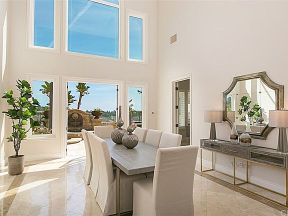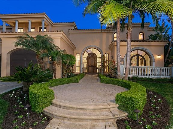 Breathtaking ocean views, illuminating natural light, expansive foyer, and floating staircase, welcome to Casa Carmel Woods. This Mediterranean masterpiece will delight your guests as they are swept away by the soaring ceilings and impressive dining room that leads to the Pebble Tec saltwater pool and spa with a romantic fountain. Entertain in the backyard loggia complete with a fireplace, television, ceiling fans, and heaters. Enjoy cooking a feast al fresco with your built-in barbecue, numerous wine refrigerators, and outdoor sink. Enjoy the lower level featuring a spacious family room, wet bar, formal living room, kitchen, laundry room, powder room and bedroom en-suite with its own full bathroom. Relish in your over-sized office, replete with custom built-ins and natural light. The upper level boasts five spacious additional bedrooms all en-suite with full bathrooms. A decadent master suite provides peace and tranquility as you gaze at the beautiful Pacific Ocean. Decompress in your master bathroom, with terrace, featuring a stunning ocean view, jacuzzi tub, and luxurious master closet that will be sure to please. Appreciate privacy on a quiet cul-de-sac in coveted Ocean Ranch.