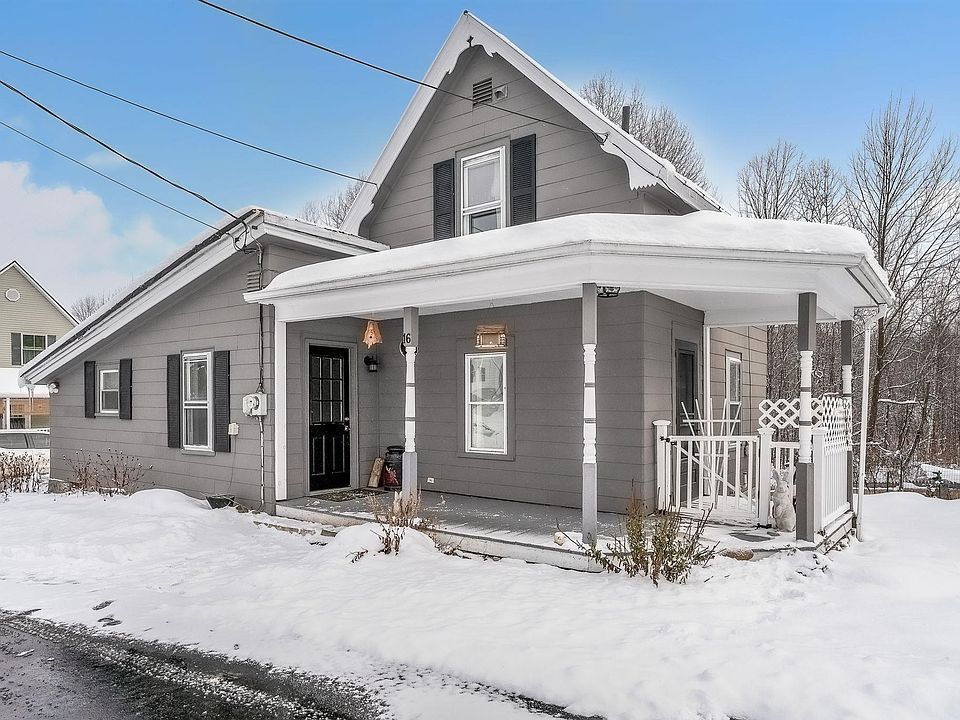 Located on a quiet, dead end street, this classic but updated New England Home is sure to check off all of the boxes. With a bridge connecting to the Barre Town Forest, the great outdoors is just a few feet away from your own backyard. There is off street parking, and the road is maintained by the Town. The first level provides a cozy living room with a wood stove, refinished hardwood floors, and a spacious bedroom with access to the porch. The kitchen has updated quartz countertops and new cabinets, provides a washer and dryer, and there is a full bath, with newly tiled flooring. Right up the stairs, you'll find another bedroom, located right next to a 3/4 bath. The electrical and plumbing have all been updated. Whether you're enjoying time on the front porch, exploring the forest, or staying indoors, you'll be sure to find just what you need with this home.