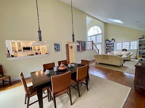 Vacation in style in this totally renovated, updated post modern home, located in quiet NorthWest Woods community in East Hampton. The home offers 4 bedrooms, open concept living room with fireplace and dining area, with glass door to screened porch and to the al-fresco dining patio; further there is eat in kitchen with all top of the line appliances and marble top cabinetry. On the main floor you will find two guest bedrooms and a full bath, a powder room and a laundry area. The spacious master suite with a fireplace, private balcony and luxurious master bath with jacuzzi occupies the second floor. Separate staircase leads to a junior master suite, offering ultimate privacy with another entrance door. Lower level has a gym room set up. Two car garage, gorgeous landscaping with mature trees and shrubs, lovely stonework, screened in porch and a heated pool. Chic and elegant furniture makes this the perfect vacation retreat..