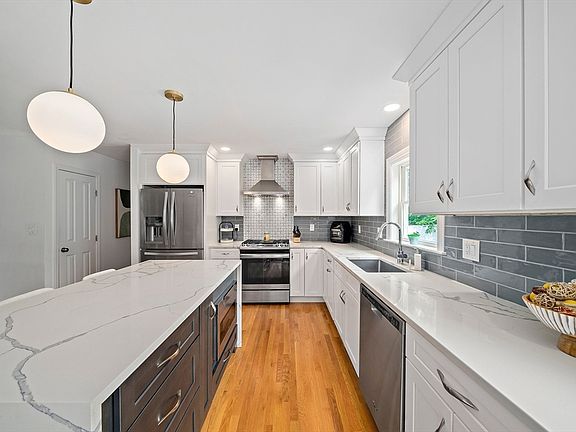 Step into this beautifully updated residence where comfort style and functionality come together.Upon entering you’ll be greeted by gleaming hardwood floors and open-concept layout.The heart of the home is the stunning remodeled kitchen, designed to impress.It features white cabinetry with crown molding, S/S appliances, and large center island with waterfall quartz countertops. The kitchen seamlessly flows into a spacious dining area and a cozy family room, making entertaining a breeze.This home offers 3 bedrooms and two beautifully updated bathrooms.Downstairs, the finished lower level offers a large family room with endless possibilities, create a media space, home office or gym.There’s room for everyone. Set on fenced, 3/4 acre lot, the outdoor space offers,a great place to host guests or relax in the outdoors.A 2-car attached garage adds convenience and additional storage.Located in an ultra-convenient neighborhood, just minutes from shopping, restaurants, school & Rexhame Beach!