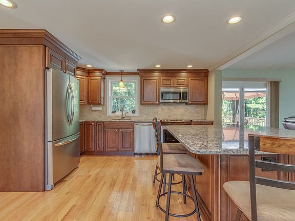 So many UPDATES! Spacious colonial in desirable, low traffic, neighborhood on a nice level lot is now turnkey ready for YOU to call HOME! Very IMPRESSIVE Kitchen has been completely remodeled with high-end cabinetry, quartz counters, tiled back splash, brand NEW appliances, large center island and hardwood floors! Open concept dining area features custom built-in cabinetry, crown molding, chair rail with shadowbox trim and hardwood floors. Freshly painted and NEW carpet on the entire 2nd floor! Master bedroom has two walk-in closets! Bathrooms have all be updated with new flooring! You'll find tons of room for the whole family with three family room areas allowing multiple options for office space, exercise room, play room etc. Plenty of storage area in the roomy garage, lower level utility room and shed. Does MAINTENANCE FREE appeal to you? Then this is the one you've been waiting for! With vinyl siding, vinyl windows, PVC trim, large Trex deck with vinyl rails, NEW furnace and NEW AC for the main house, irrigation, NEW garage doors and openers there's very little to do ... so put your feet up and relax!