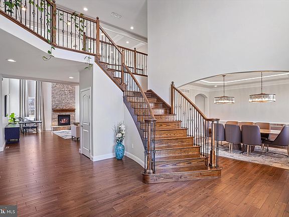 You must see this gorgeous contemporary home located on a premium 1.01 acre lot on a cul-de-sac street in the desirable subdivision of Green Valley Crossing. This home offers an expansive 5,438 sq ft of exceptional living space! Enter through an impressive 2-story open foyer with a stunning crystal chandelier, hardwood flooring and a dramatic curved staircase with rod iron spindles. To the left, a formal living room with recessed lights and crown molding. To the right, an elegant formal dining room with a tray ceiling, upgraded lighting, chair rail, and double crown molding. Ahead, a breathtaking great room is sure to impress you with its soaring 18' coffered ceilings, exquisite chandelier, custom blinds and drapery, and floor to ceiling stone gas-burning fireplace. This flowing open concept then takes you into the designer gourmet kitchen offering an extended quartz island, upgraded tile backsplash, a thoughtfully customized pantry, and high-end stainless appliances including a Wolf stove, Sub-zero refrigerator, Miele Steam and Speed ovens that both double as air fryers, a Miele warmer, and a commercial grade vent-a-hood. From the kitchen, an archway transition leads into the additional sunroom complete with plenty of windows, skylights, and French door to the covered back deck. And, the kitchen, breakfast area, and sunroom all have radiant floor heating! You will also find a nicely-sized bedroom and full bathroom on this level, as well as a super convenient first floor laundry/mud room complete with lots of storage and an awesome doggy bath stall shower! Upstairs by way of the dual staircase, you will find a wide hallway with hardwood floors that continue into all four upstairs bedrooms, including the impressive master bedroom suite featuring a bonus room that is currently a home office, vaulted ceilings, a huge walk-in closet, and a custom master bath with his and hers granite vanities, and an envious dual-head custom tile shower. The three additional bedrooms all have ceiling fans and recessed lights, one of which boasts its own private bath, with the other two bedrooms sharing a convenient and roomy Jack and Jill bathroom. Downstairs the basement boasts tons of storage space and an outside walkup for egress. Outside has endless possibilities with the covered back patio, large, flat backyard, and landscaping with custom lighting and privacy trees. Additional features to note in this amazing home include: recessed lighting, custom cabinetry, and hardwood flooring throughout, 9' ceilings on every level of the home including the basement, a rough-in for a basement bathroom, a water softener and reverse osmosis treatment system, dual zone gas HVAC, and oversized side entry 3-car garage. So call today for your private showing! You will not be disappointed!