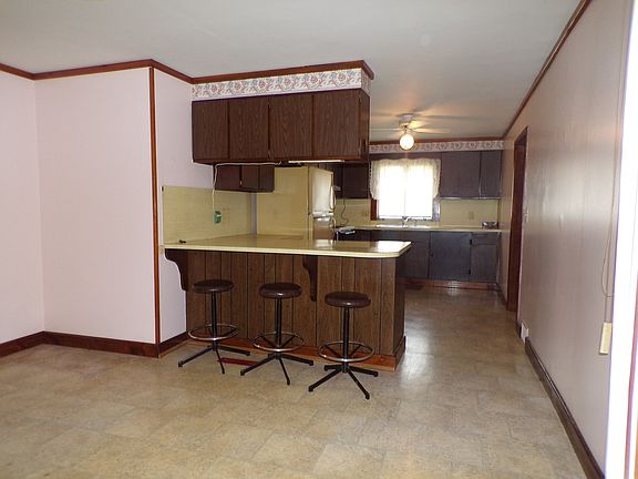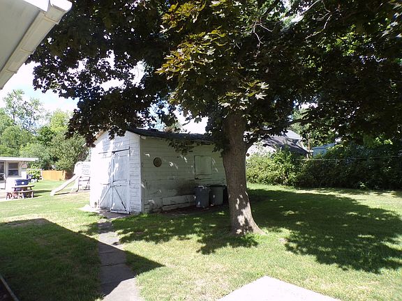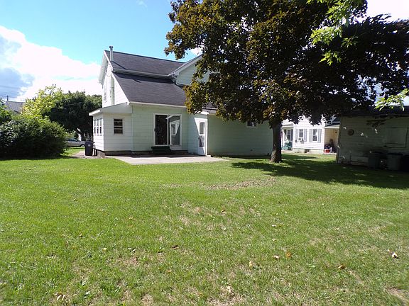Same owners for well over 55 years...This village home features large spacious kitchen with breakfast bar & dinette area w/glass sliding doors leading out to concrete patio. Large carpeted living room with brick WB fireplace (needs liner) followed by smaller den & large 1st floor bedroom w/plenty of closets. First floor full bath & laundry hook up. 2nd level you'll find 3 additional hardwood floored bedrooms & half bath in one of the rooms. Enclosed side porch works as a great entrance or mud room. Laundry in basement currently. Main roof-15 yrs. House is sold "as is" to Preapproved buyer ONLY