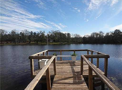 Very pretty home right on the lake. It features a split floor plan, rock fireplace in living room, big closets, master bath with big soaker tub and shower, front porch, tiered back deck , 8 x 10 shed, 10 x 16 shed, and dock on lake. Come see it.