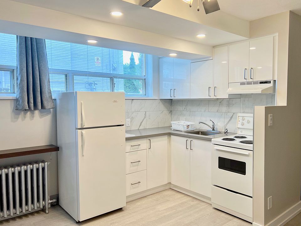 THE SPACE This lovely lower level East facing raised basement bachelor unit comes complete with an open concept kitchen and living area to entertain and is ripe and ready to be your next home. The 2022 renovated kitchen has stunning quartz counter- tops, ceramic backsplash and plenty of cabinet space. The living area has beautiful calming laminate floors and can fit a sectional couch or daybed, a coffee table to double as a breakfast table and a nook for your home office. Enjoy being bathed in daylight with the large windows and take advantage of the 3 storage closets. Your new bathroom has modern ceramic marble-like tiled walls, sparkling floors, a white vanity and a tub to soak your troubles away. The best part? This adorable studio apartment has been completely made over from top to bottom! NEIGHBOURHOOD Steps to the GO Train and Main Street's charm and vibrancy, you will love living here! Rosalea, Gauge and Centennial Parks are all within a short 250 meter to 1km walk. Enjoy seasonal park festivals all year long including a gorgeous day and night lit skating rink in the winter! Walk down Main Street and enjoy the lively vibe of upscale stores and restaurants, hanging baskets, and Starbucks! Or step off the Go Train or bus for a mere 350 meter 4-minute walk to come home to charm and character in the center of it all! Surrounded by stately homes on a tree-lined street, you will love retreating to your spacious and bright oasis! Come home!