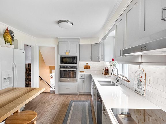 Completely upgraded classic New England Shingle-Side home on double cul-de-sac in desirable Slate Hill Farm? Enjoy sunset views from new front porch and relax on 725' rear deck overlooking the park-like grounds with rolling grassy open space, magnificent oak, sycamore, maple, cherry & pine trees. This house has 3/4/bedrooms, 3 new bathrooms, and sits on a corner lot. Over-size 30x22'garage! 800 sqft Family Room on level 1 has custom cabinetry &built-in window seat with authentic natural stone backwall. Oversized windows let in abundant sunlight!. The Main Level showcases a 2021 Eat-in Kitchen which opens to Living & Dining Room, so great to entertain in! This brand new kitchen has solid wood cabinets, porcelain-tile floor & quartz counters. Living Room has a huge picture window that allows the sunshine in. On 3rd level you'll find the master bedroom & ensuite custom-tiled bathroom with show-stopping marble countertops & 2 cedar walk-in closets. The additional 2 bedrooms share an updated full bath. The 4th top level is a Bedroom/Office & beautifully re-designed full bathroom! Perfect for a home office, or teen or au paire suite! Owner pays grounds maintenance, water, & sewage disposal. Tenant pays oil heat which is supplemented by 4 Mitsubishi mini-splits AC units, and electric, cable. Rent is $3,300/month for a 11 month lease starting in August, 2022.