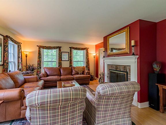 Tucked into the mountains of Rupert find this light and airy colonial with a private setting showcasing mountain views, and a manicured, landscaped yard with a pond. While feeling worlds away, you are merely 6 miles to Dorset Village or 12 to Manchester. From the covered front porch entry, access a spacious living room with wood burning fireplace to one side or the cozy den on the other. At the back of the home, you will find an updated kitchen with quartz counters, stainless steel appliances, heated tile floor, tile backsplash and an island to gather around. The kitchen is open to the dining room so this home has a great flow for entertaining and moving from room to room throughout an evening with friends and family. Relax at your Vermont hideaway from a stone patio off the kitchen and dining room or rock your worries away on the classic front porch. Plenty of large windows flood the rooms with light and views of the serene setting. Four bedrooms including the master with a beautifully updated bath are on the second floor and a bonus room and another bath over the garage provide additional options for guest spaces or living configurations. Get lost in the peaceful setting of 16 Clark Road but know you are never far from finding your way back to all the area’s amenities.