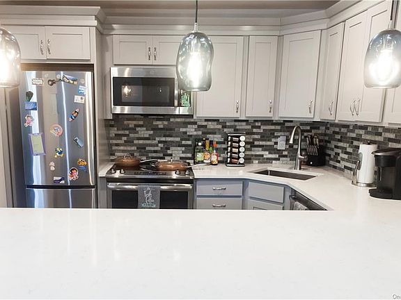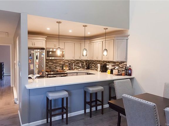 Beautifully renovated Townhouse offers a large open floor plan with new custom Kitchen with designer tiles and SS appliances. The home features large living room with fireplace and cathedral ceilings, just off the living room are double french doors leading to a nice size den/office/spare bedroom. Both bathrooms are stylish and elegant with designer tiles, floors and fixtures. There is electric heating with an oil option and fully Air Conditioned. Cathedral Vaulted/High Ceiling. "Harris Woods" Large Corner Unit with an Extended Deck. Community Pool and Clubhouse, Tennis Courts and all year round Gym. Close to all, just a short drive to new Resorts Casino, Kartrite water park, Bethel Woods center for the Arts, antique shops, great area restaurants and Holiday mountain for skiing and winter sports.