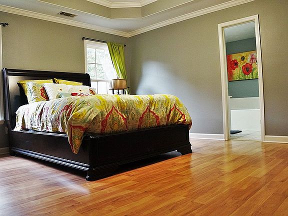 Lots to offer in this beautiful home! New granite countertops w/ stone backsplash in kitchen. New garage door. New laminate flooring. New paint. Extended parking pad. Spacious living area w/ 10 ft ceilings & gas log fireplace. Master suite hasd 2 walk-in closets & tray ceiling. Floored attic above garage provides additional storage. Nice backyard with covered patio and deck space. Many neighborhood amenities- basketball, tennis, volleyball, pavillions, & fishing- running & biking trails. Must see!