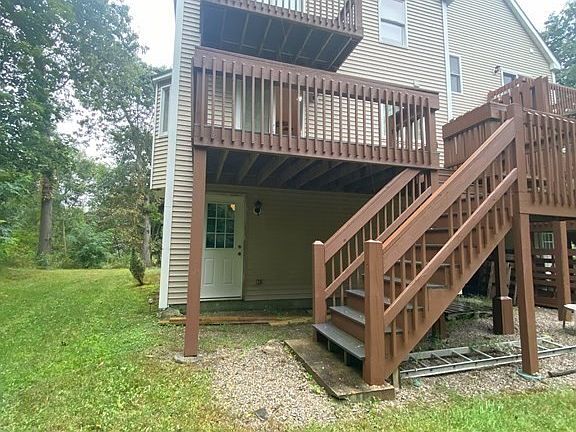 Contractors and handyman take notice! Exterior construction complete. Perfect investment opportunity in a gorgeous sun filled end unit in Margaret Meadows. 1950 sqft of living area waiting to be finished to fit your needs. Enter to large mudroom/entry with full bath, on second floor there is open concept kitchen/dining/living with a half bath, gas fireplace and glass slider to deck. Two large bedrooms on the second floor, one with walk in closet and one with oversize loft space. In the hall, there is a spacious full bath and separate closet with laundry hookup. Location cant be beat, close to shopping, restaurants and highways but at the end of the private drive. Surrounded by forest and beautiful views of the Mill River to the rear and side, this is the project you have been waiting for. Showings begin at open house Saturday 10/7.