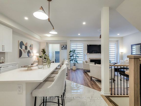 Welcome to your Executive End Unit Townhome - One of the most Spacious Floor Plans in the Phase 2 community boasting Almost 3000 sq feet! Embrace A Lifestyle Of Comfort, Elegance, And Convenience In This Beautiful Ajax Northwest Community. This Cozy Home features smart energy efficient appliances that are easily controlled at your fingertips. Large Loft that can be easily converted to 4th Bdrm. Open Concept Main Floor with 9" Flat Ceilings. Kitchen W/ Quartz Counters, Undermount sinks throughout the home, Soft Close Drawers. Kitchen Overlooks Great Room With Gas Fireplace. Upgraded Inlaw/Guest Bedroom with 4Pc Ensuite. Primary Bedroom With Spa Like 5Pc EnSuite And 2 Way Fireplace With 2 W/I Closets. Outdoor Natural Gas BBQ line. Modern Finishes And High End Upgrades On Every Level. Main Fl. Office W/ French Glass Doors, Main Fl. Laundry & 2 Car Garage and can park up to 4 parking spots! Garage Entry From House W/i EV Charger. Home is still under Tarion Warranty. This Gem Is Conveniently Located Near Schools, Parks, Shopping Ctrs, & Mins to Major Highways. A Must See!