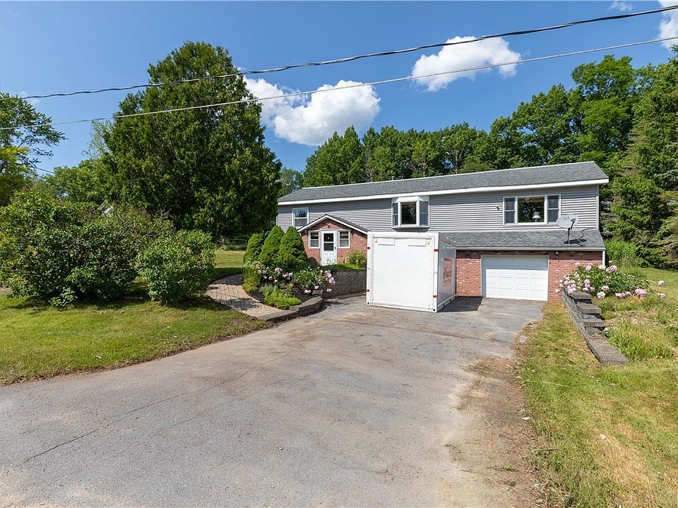 This beautifully updated 3 bedroom, 2 bathroom, raised ranch is located in the Village of Pulaski. Space abounds on this half-acre property. Enjoy tranquility in the sites and sounds from the Salmon River running along the back yard. Outdoor entertaining awaits on the spacious deck and  stamped concrete patio. Inside welcomes you with spacious rooms. A beautifully appointed kitchen includes Kraft Maid cabinetry, granite countertops, an island, a butcher block cart, a breakfast bar, and stainless steel appliances. The formal dining room offers a great gathering space with a large bay window. Natural light wraps all around in the large living room. The main bath has a tiled walk-in shower and the downstairs bath offers a tub and shower combination. The lower level has ample space in a generously sized laundry/mud room. Storage space continues in the back basement and two single car garages. All waiting for you, to call it home! Please submit all offers by 5pm on 7/27.