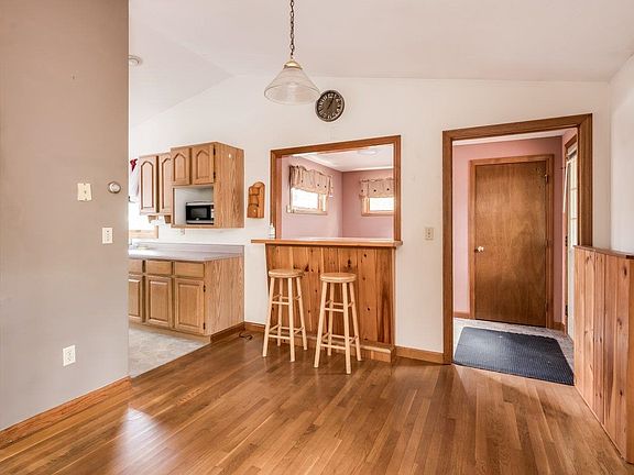 Welcome home to this charming 2 bedroom, 1.5 bathroom ranch home. As you step inside, you'll be greeted by the inviting open-concept design featuring stunning vaulted ceilings that create an airy, spacious atmosphere. The living room is bathed in natural light from the large windows, making it a perfect space to relax and unwind. The adjacent kitchen opens to the dining area with bar seating. A half bathroom is conveniently located for guests. Both bedrooms are spacious and the full bathroom with laundry is easily accessible from the main living areas. One of the standout features of this home is the expansive back deck, ideal for outdoor entertaining, grilling, or simply enjoying your morning coffee in a serene setting. The large backyard provides endless possibilities for gardening and play. Don't miss the opportunity to make this your forever home - schedule your showing today to experience the charm of this exceptional property for yourself!