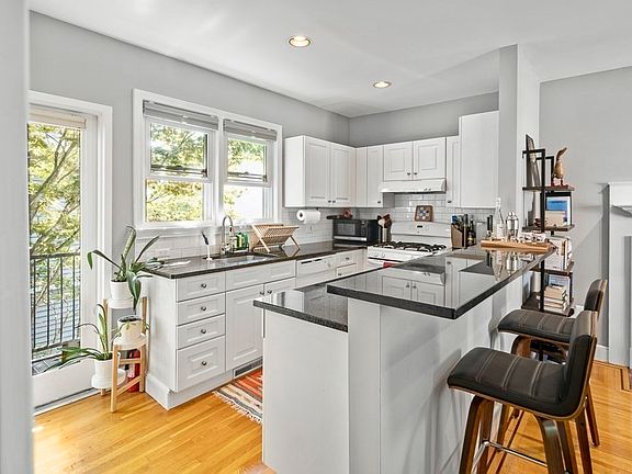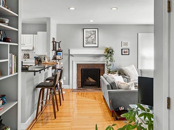 Located on beautiful Colliston Road near the Brookline border, this stunning, sun-drenched, 2nd floor 1-bed in a converted Victorian is sure to delight. This one boasts both amenities and architectural beauty, offering 680sf, 3 exposures, treetop views, expansive open living area, fireplace, patterned geometric hardwood, and more. Cook and dine in your beautiful granite kitchen with breakfast bar and backsplash. Rest and dress in your beautiful primary bedroom with cathedral ceiling and skylight. The unit also offers an updated bathroom, new HW heater, high-efficiency gas heat, and laundry in unit. Other features include coveted private parking, association guest parking, a low condo fee, basement storage, and an attentive 6-unit association with high owner-occupancy. All this and more is primely located near the Green Line (B, C, and D trains), Whole Foods, innumerable restaurants and shops, plus the beautiful Chestnut Hill Reservoir. Definitely one you don’t want to miss!
