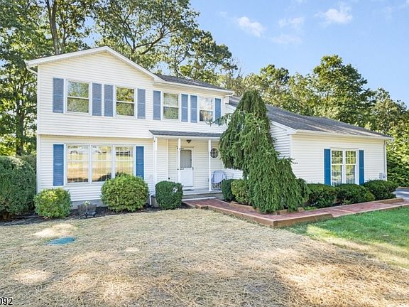 Lovely 4-Bdrm/2.5 Bath Colonial in Dawns Mist community has been meticulously maintained by the original owners.This beautiful home is nestled on gorgeous, 3/4 acre lot w/tremendous curb appeal.The spacious floorplan provides for front door entry to a light & bright LivingRm, Eat-In Kitchen w/Breakfast Nook opens to sunken Family Rm on one side & Dining Rm on the other-perfect for entertaining! Powder Room, Laundry/Pantry Cabinets, Garage entrance complete this level. Hardwood Floors throughout Home, including under carpeting in Bedrm, Hallway & Stairs-ready for your preferred color/stain. UL Primary Suite has Private Bath w/walk in Shower & Double Closet. 3 More Roomy Bdrms & shared full Bath w/Tub/Shower, not 1 but 2 attics available for storage-access (mostly floored) attic over the garage from Primary Closet; 2nd attic in UL Hallway. LL Basement offers addtl 699sf of finished, versatile living space-currently positioned as a Recreation+Game Rm w/lots of closets-also Utility Rm & fantastic Workshop. Sliders to Patio w/custom Brick Fireplace & Green Space for outdoor dining, s'mores over the pit or simply conversation! Property backs to woods for privacy. New driveway (2023) for plentiful parking, 2-Car Garage. Recent Updates include Septic/inspected by JeffersonTwp Board of Health, 40yr Timberline Roof & 3-zone HWBB Furnace installed appx 12 yrs ago. Great Commuter Location, enjoy the proximity to Lk Hopatcong restaurants, marinas, Liffy Island hiking & more. Quick Close!