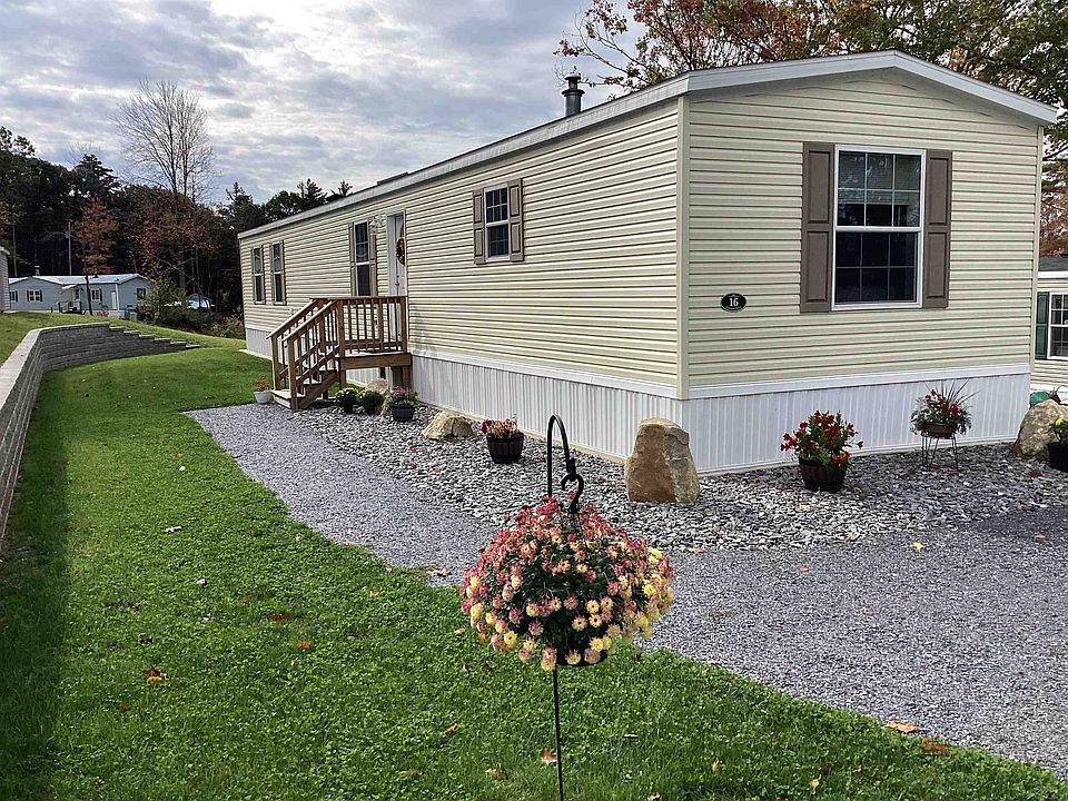 Meticulously cared for and like new Titan manufactured home is awaiting its new owner. The Kitchen is a main highlight in this spacious open concept home. The center island provides for a very convenient and efficient work area for meal preparation. The island counter top offers a double bowl stainless steel sink on one side with a breakfast or lunch bar on the opposite side. It is an attractive and streamline layout. In addition, there is ample room in the kitchen for a table and chairs that create a cozy dining area. The separate Laundry Room, off the kitchen, is a special feature that you often will not find but will always enjoy having! The Living Room is open to the kitchen but set-apart by partial walls that give just enough separation to allow distinction to each room. Laminate floors throughout both spaces make for a fluid floor plan. The primary bedroom has a double closet and private bath. There are many extras that make this home special including 2x6 construction, natural light and recessed lighting, 6” window sills, dimmer switches on all lights and crown molding throughout. You will also enjoy use of The Park owned 10x12 storage shed. Just 9 miles to MA border, and 8 miles to Keene. Privately owned and one of the most affordable Parks in the area for full time living or for all those snowbirds! Welcome to Colonial Gardens Mobile Home Park!
