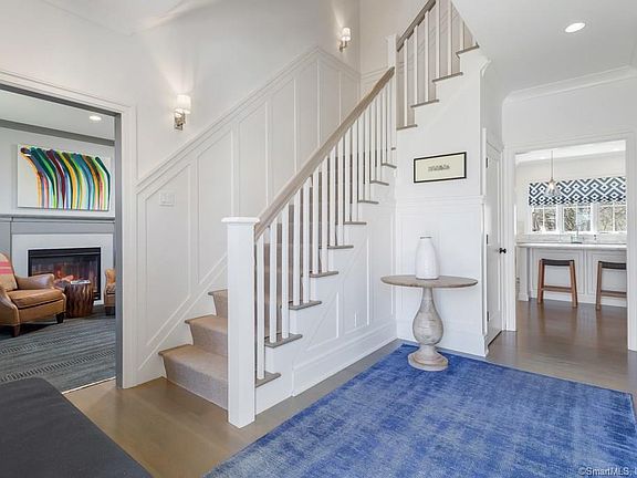 EASY TO SHOW WITH PERSONAL PROTECTIVE GEAR. Call for appt. Custom colonial on .28 private acres located on a desired street in Greens Farms is the perfect place to call home. The distinctive transitional design creates bright flowing interiors with unique finishes for modern living and entertaining. Beautifully maintained, this property boasts superb craftsmanship, designer specified millwork, and high-end quality fixtures. Extensive paneling lines the foyer, living room, and dining room. The sleek, artfully designed, fully-equipped kitchen and breakfast area transition to the family room with fireplace and French doors to the bluestone patio and private backyard. On the 2nd level, the master suite with walk-in closets is complete with a luxury marble spa bathroom. An additional ensuite bedroom, two family bedrooms with a shared bathroom, and a laundry room complete this floor. On the 3rd level is a bright bonus room, additional bedroom, and full bathroom. The lower level features a multipurpose/playroom/exercise room, bedroom, and full bathroom. Whether you are coming or going, this close to town location is a short walk to neighborhood shops and a quick drive to the train! This 4,997 sf, 5-6 bedroom, 5 bath with 2 car garage home is available for a quick close.
