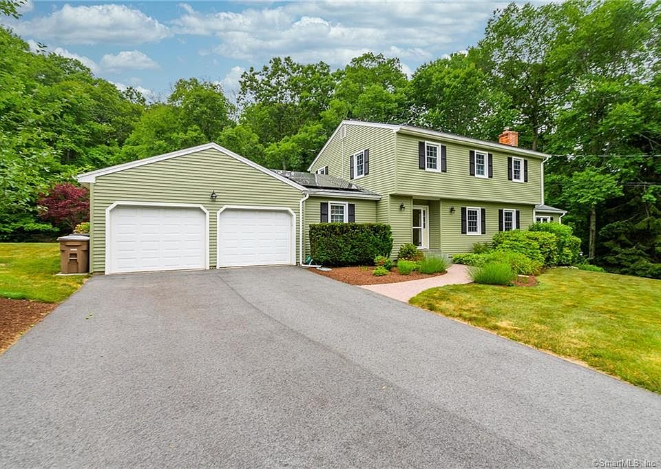 All the work is done in this inviting Colonial home with plenty of space for everyone. The lightly wooded grounds of this manicured 1 acre+ double lot provide privacy without isolation, shaded comfort and 2 fruit producing apple trees. You will feel at home from the minute you step through the front door. Just off the entry way is a generously sized living room with hardwood floors and built-in bookshelves to accent the wood burning fireplace. The dining room is nicely situated in the center of the home just off the eat in kitchen. The kitchen was remodeled in 2013 with cherry cabinets, granite tops, a center island, and stainless appliances. The den is just right for work that needs quiet concentration, can become a hospitable guest room in minutes or a quiet retreat to enjoy good books and music. Rounding out the main floor is the sunroom with cathedral ceilings that magnify the already spacious gathering place. The redwood paneling, built-in cabinets and fridge, ceramic tile flooring and propane stove for heat, make this spot the ideal space for your workout room or watching your favorite sporting event. Did I mention there is a second office on the main floor? The upper floor has 4 bedrooms, all with hardwood floors and central air conditioning. The lower level is unfinished with plenty of storage shelves. Too many details to list and not enough space to do so, you will not be disappointed.