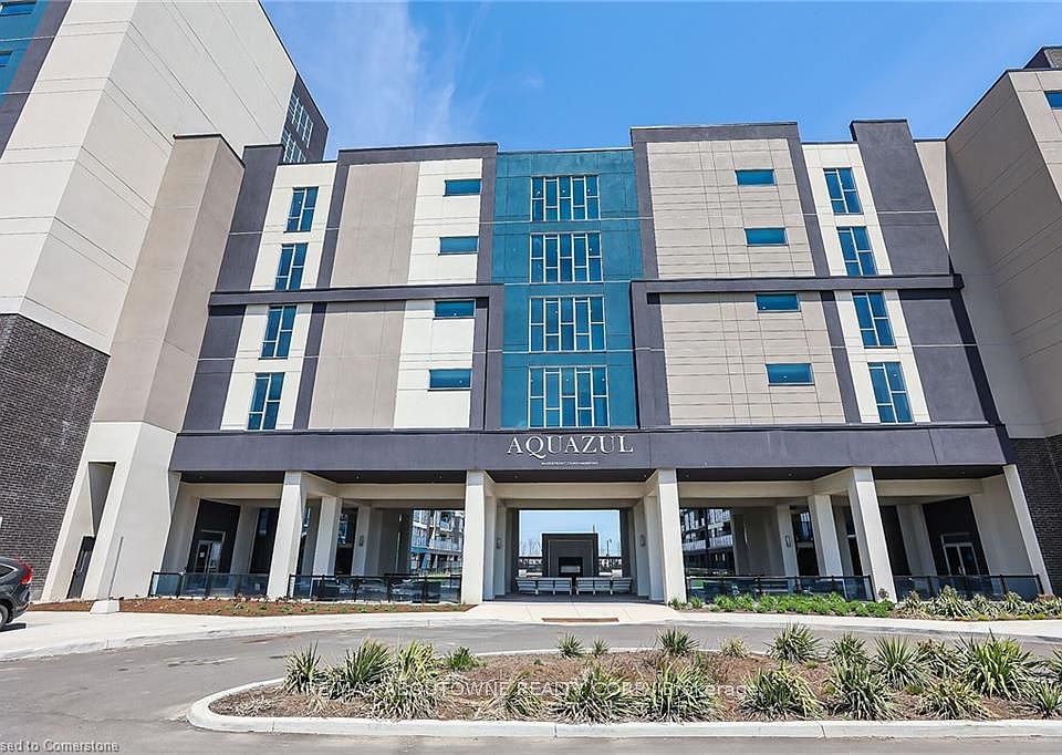 TOP Floor!Lakeside Living at Its Best in Grimsby-on-the-Lake! Welcome to Unit 621 at 16 Concord Place, a beautifully maintained 1-bedroom condo in the sought-after Aquazul Waterfront community. This sun-filled top-floor unit offers a smart 530 sq. ft. layout with 10 ceilings, modern finishes, and an east-facing balcony perfect for enjoying beautiful sunrises over morning coffee. The open-concept kitchen features raised quartz breakfast bar with waterfall edge, ideal for entertaining, stainless steel appliances and double sink. The spacious living area with wide plank laminate floors ,California knock down ceilings and potlights flows seamlessly to the private balcony, while the bedroom offers ample closet space and plenty of natural light. The generously sized bathroom features floating vanity with quartz counter and a deep tub for relaxing after a walk by the lake. Resort inspired amenities include outdoor pool bbq areas, fireplace and large patio area for relaxing with friends and family. Other amenities include gym, party room, storage for bike theatre and billiards room. Bonus Features: This suite comes with 1 underground parking space and TWO full-sized storage lockers a rare find in the building! Some photos were taken prior to or during occupancy.