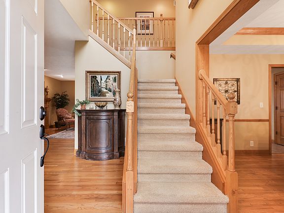 Outstanding location in popular Golden Eagle neighborhood. Very well maintained 4 bedroom /3.5 bath home with great curb appeal. 2 story entryway with dual staircase. Main floor office. Hardwood flooring in entryway, formal dining room and family room. Large eat in kitchen measures 20x14 and features granite countertops, tile backsplash, pantry closet and all appliances remain. Great 14x9 main floor laundry room has a lot of cabinets and utility sink. Nice master bedroom with an 11x10 walk-in closet and large master bathroom. Finished basement with daylight windows in the family room with fireplace, built-in bookcases, exercise room, full bath and ample storage. Wonderful backyard with composite deck, pergola & stone paver patio all new in 2020. Nice covered front porch & 3 car garage. Other updates include new roof in 2014, HVAC 2017, whole house humidifier and new refrigerator in 2023. Great east side Bloomington location near park, schools, shopping and restaurants!