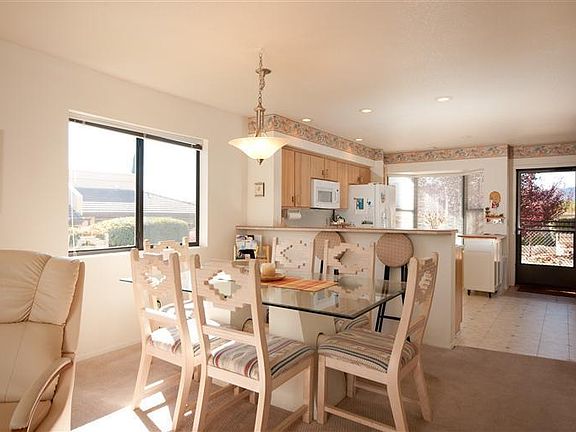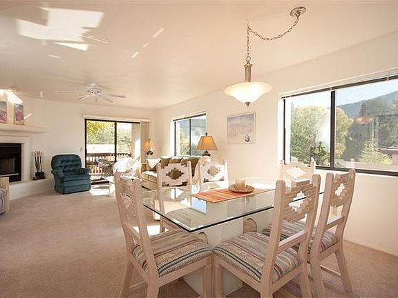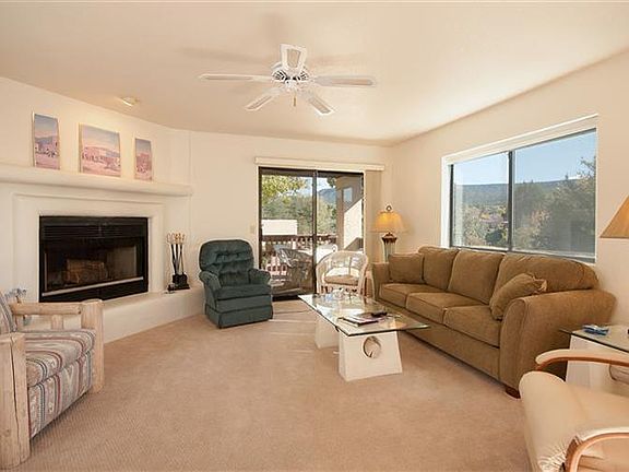Great end unit casita in popular Canyon Mesa Country Club. This corner condo has extra windows, so the unit is light, bright, and cheery with views of the red rocks and golf course, especially from the upper patio off the master suite. Living Room enjoys a gas fireplace with a nice patio looking out to the golf course. Being sold fully furnished with dishes, linens, and nick knacks, with a few exceptions. Canyon Mesa Country Club is a 9-hole executive golf course, tennis courts, swimming pool, jacuzzi, and gated neighborhood backing national forest. This location offers resort style living with little maintenance of your interior. HOA dues of $325 a month include all the amenities listed above plus unlimited golf for homeowner, exterior maintenance & l... (see supplement for full remarks) Great end unit casita in popular Canyon Mesa Country Club. This corner condo has extra windows, so the unit is light, bright, and cheery with views of the red rocks and golf course, especially from the upper patio off the master suite. Living Room enjoys a gas fireplace with a nice patio looking out to the golf course. Being sold fully furnished with dishes, linens, and nick knacks, with a few exceptions. Canyon Mesa Country Club is a 9-hole executive golf course, tennis courts, swimming pool, jacuzzi, and gated neighborhood backing national forest. This location offers resort style living with little maintenance of your interior. HOA dues of $325 a month include all the amenities listed above plus unlimited golf for homeowner, exterior maintenance & landscaping, trash, sewer, & roof repair or replacement when needed. See attached list from HOA! One covered carport and one open space for parking. Locked storage space at the end of the carport, plus storage closets off both decks.