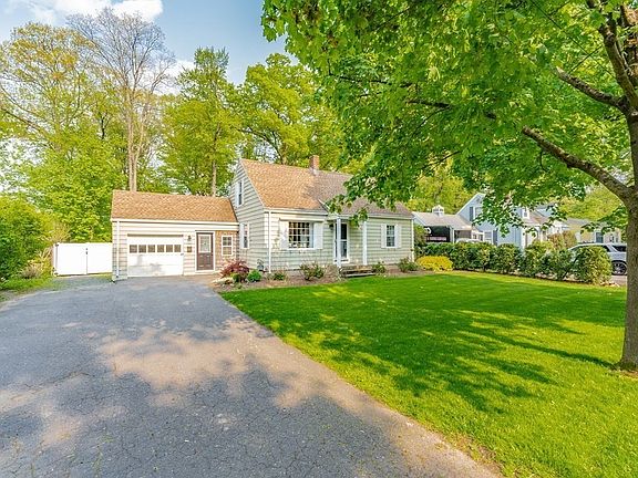 Home Sweet Home! This lovely cape style home shows as lovingly cared for with neutral, stylish decor. The back yard has a richly designed patio that leads to the pool with newer wood deck large enough for a full sized outdoor dining table and chairs. There is also a covered patio area with TV adorned with lighting and cape code style appointments. A relaxing firepit calls us to enjoy outdoor evenings with friends.The yard goes well beyond the fenced area where a wooded area provides more privacy. Inside you will have no problem organizing as the mudroom is equipped with hooks and cubbies for everyone.The kitchen is well appointed, has newer appliances and is open to the dining room with a breakfast counter.There is a large living rm, a beautiful full bath with space saving pocket door and a first floor bedroom! Upstairs are two bedrooms and 1/2 bath with pocket door.The lower level is partially finished and has another full bath.Wired for generator. Highest and best May 15, 7 pm
