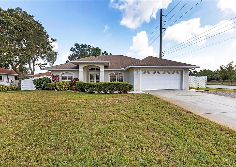 Beautiful South Venice pool home just 2 miles to Manasota Key Beach and close to all of Venice's amenities. Engineered hardwood graces the floors throughout the open floor plan with tile in the kitchen, baths & laundry. Cathedral ceilings enhance the living space. The kitchen is open to the living room and incorporates the space with a breakfast counter . The home flows to the pool & patio area through sliders in the living room, French doors in the master suite & a slider in the guest bedroom. The rectangular pool boasts lighting and a fountain. The pool cage screens, screws & door openers are new in 2023. Fenced yard provides privacy in the pool area. Large corner lot has extra parking for guests, RV or boat. HWH is just weeks old. Newer well & pool pumps. Roof is original but it does have mitigation straps. HVAC replaced in 2013. Hurricane shutters. Close to South Venice Civic center which offers boat launch & ferry to South Venice private beach for a modest annual fee. Buyer to verify room dimensions.