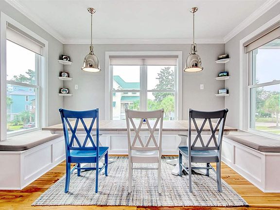 This 5 bedroom 5 1/2 bathroom home is located walking distance to the Marsh Walk, and minutes from Business 17. This stunning home has Plantation Shutters through out the home and stunning 7" wide hard wood floors on the 2nd and 3rd levels, and ceramic tile on the first, Plantation Shutters on all windows which have hurricane impact glass, Crown Molding throughout the home, Master bedroom has walkout to a private balcony, sitting area, gas fireplace(1 of 2), walk in closet, en suite master bathroom has double sinks heat lamp and jacuzzi tub with a sperate steam shower with 7 shower heads! Large closets, central vacuum, Ceiling fans in all bedrooms and living area. True Chef's Kitchen has tin ceilings, with high end stainless steel appliances, Dual refrigerators, soapstone counter tops, 6 burner cooktop, built in flat top grill, double ovens, microwave and stainless steel sink with gooseneck faucet. 4 Spacious balconies with seating and Trex Decking. The entire interior was freshly painted in late 2019 and did we mention the Theater/Game room with Earthquake Sound System and a custom built bar! This home has dual tankless water heaters to provide endless hot water! Storage space is awesome as well, and the garage is heated and cooled! If you are looking for a truly wonderful home, don't miss this one.
