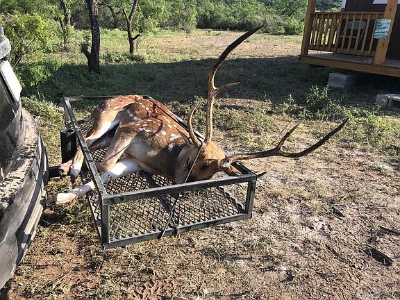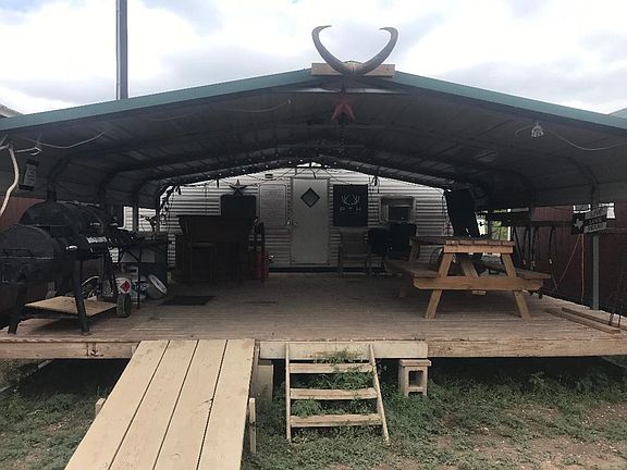 Great hunting ranch in Edwards County with 2250 ft of elevation and one mile of river bed game funnel system. The property line buffers 10,000 acres of free range hunting. There are large herds of free range axis and aoudad, whitetail, elk, Texas Dall rams, and hogs. Camp area has an RV that sleeps 5, a Dirksen cabin that sleeps 8, and a metal building w/ a 20 x 20 pressure treated deck. This turnkey operation includes all furniture, 55" TV w/ WiFi capability, deep freezer, bar, and gas grill. There is electricity and 10K in road systems. 100 meter x 100 meter holding pen for trapping free range animals. 5 blinds and 5 feeders are included. One mile of county road frontage, and partial fencing. The estimate for water well is $11,000 completely equipped. Come see it!