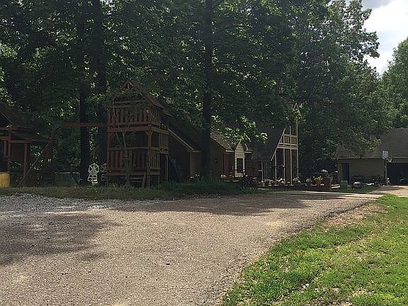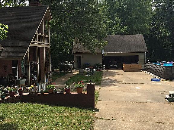 4 bedroom 3 bath house. Master with on suite bathroom and walk-in closet and 1 bedroom and guest bath are downstairs. There are two decks accessible by French doors in the living room and master bedroom. The other 2 bedrooms are upstairs with a bathroom. There is a landing that leads to top deck with a great view of the pond .The pond is stocked with bream and bass. The house has a detached garage with a 1bed/1 bath apartment. There is also a large wood burning fireplace, small shed behind garage, a metal carport for storage, a gravel parking pad for boat/camper storage, a greenhouse, and a 10x20 covered chicken coop! Appliances can be discussed. Make me an offer. We need to sell quickly!