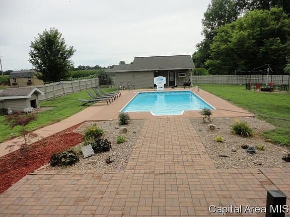 Built in 1998. One story with cathedral ceilings, 4 bedrooms (4th currently used as office). 2 baths plus full bath in pool house/mother-in-law quarters. Great room 32 x 20 open to kitchen with snack bar. Cherry hardwood(2011) floors in large entry and dining area. 3 storage sheds behind pool house. Pool house is finished with living area open to full kitchen, has full bath & is heated & cooled. Privacy fence. Central vac ( Electrolux). Pump on 16' x 14' in-ground pool, has salt water generator. Pump motor & filter new in 2016. Lots of landscaping. Fire pit, patio. Well kept home.