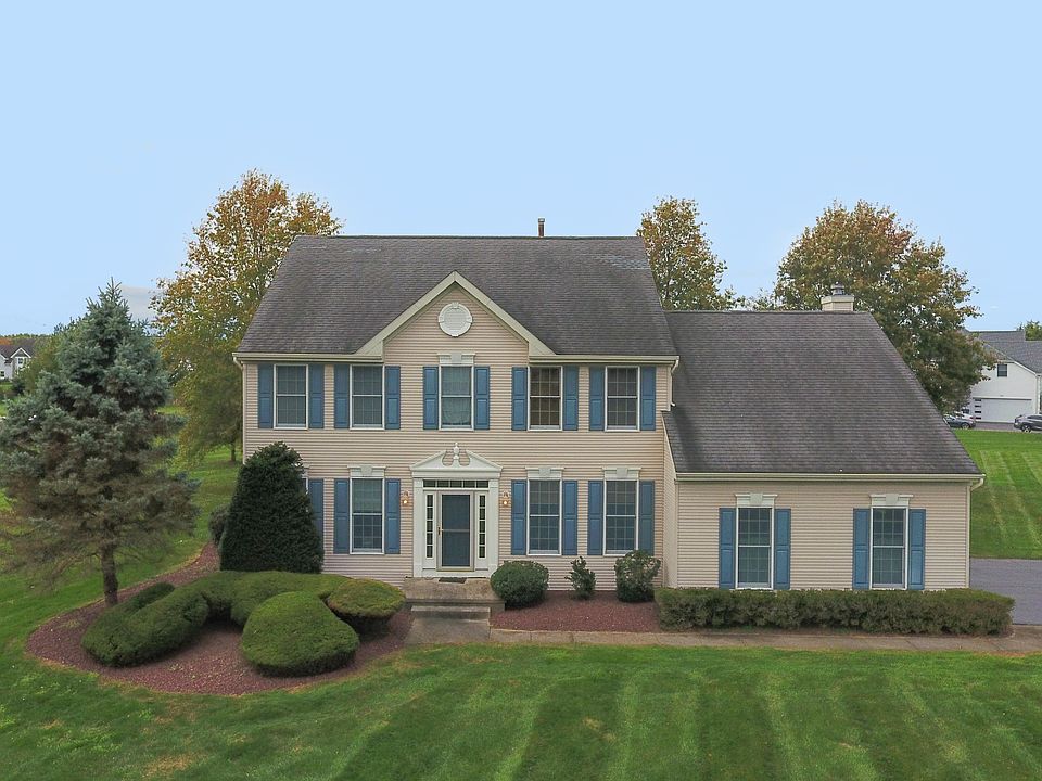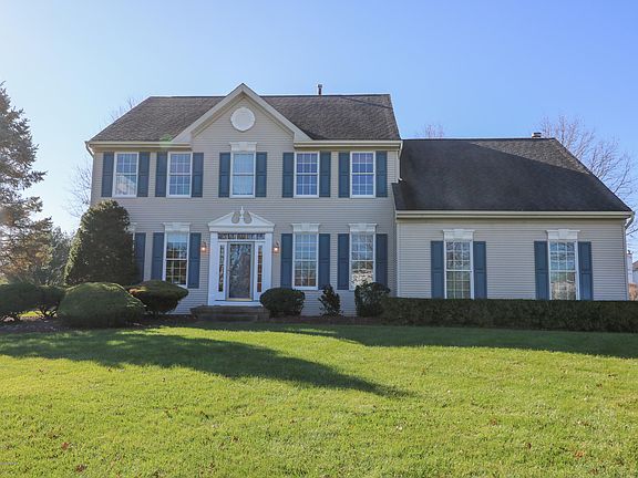Best location in highly desired Four Maples of Freehold Township. Oversized 1.53 acre premium corner lot in center of development with large meticulously maintained and advantageous south facing private back yard.. Center hall colonial with open floor plan for kitchen and raised ceiling family room with skylights and 4 bedrooms, 2.5 bathrooms, living room, dining room, home office, laundry room with 2,710+ sqft and additional 1,500 sqft of unfinished basement. 32 x 18 trex maintenance free raised deck and 100+ sqft circular custom paver patio. Large 2 car garage with storage space and double driveway with parking for multiple vehicles. Environmentally friendly well water for irrigation, Anderson windows, fireplace, kitchen center island with cooktop, microwave, garbage disposal.