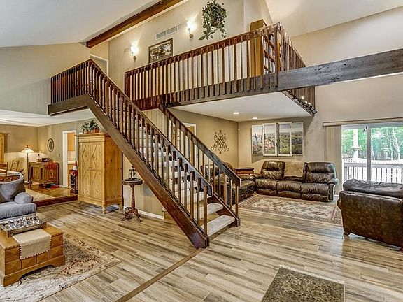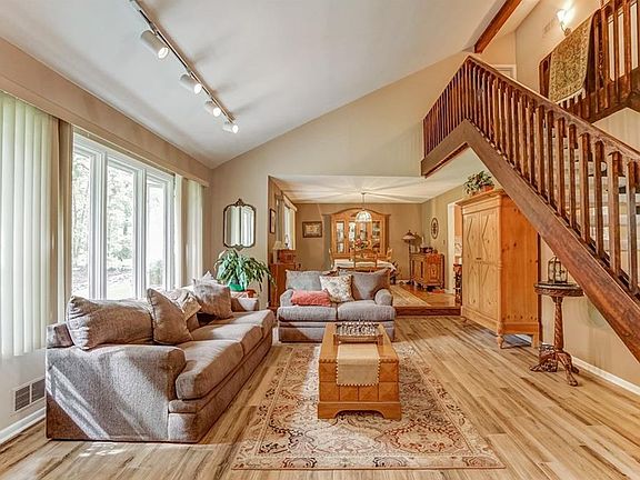 Beautiful Custom Home in Premier location at End of Cul-De-Sac: Boasts a Bright & Desirable Open Foyer w View to Living, Dining & Family Rms & 2nd Floor! Living Rm: Vaulted Ceilings & Track Lighting; Family Rm w Soaring 2- Story Ceiling W/ Skylight and Wood Burning FirePlc W Custom Brick Mantle! Eat In Kitchen w Corian Counters; 3 Nice Size Bedrms on 1st Level All w Ceiling Fan Light Fixtures; Grand Master Bedrm Suite on 2nd Floor With Private Sitting Room w HW Ctrs; Floors; 2 Deep Walk In Closets , Double Vanity and Private Water Closet in Master Bath! Large Finished Basement with Recreation Room and Office + Lots of Storage Space & Closets; Huge Custom Deck accessible by Sliders in Family Rm & Kitchen lead; Grounds are professionally landscaped & Backs to Scenic wooded lands... Truly Your own private Oasis!