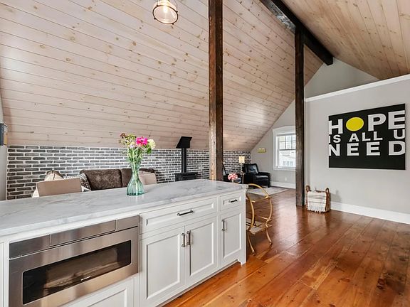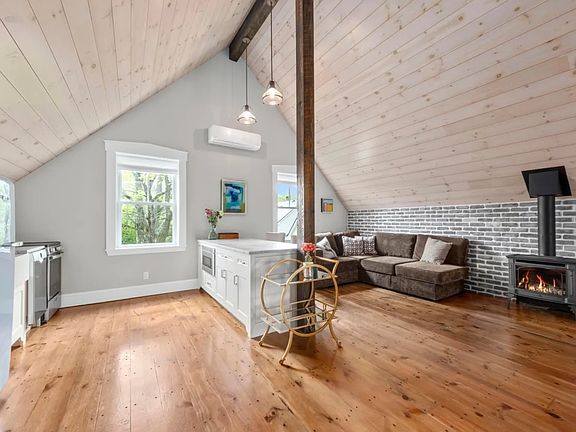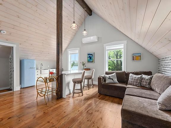 Cozy, art inspired studio apartment (located above the barn) just one block from the heart of downtown Camden and one of the most charming seaside towns on the Atlantic coast. The apartment has been newly remodeled with beautiful touches, including loft beam ceilings, designer kitchen and bath, hardwood floors, brick accents, gas fireplace, state of the art A/C, built-in drawer microwave, SMEG refrigerator, upscale furnishings, and private entrance with storage area. The studio is available to rent on a month to month basis, with no long term commitment, which makes it ideal for one or two (max) guests. All utilities included if rental period is less than 3 months. Entry to studio is through the barn sliding door and up a private entry and staircase.