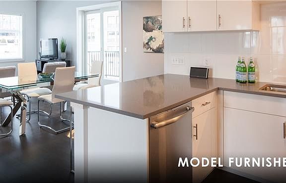 The Crossing's one bedroom residential apartment provides one floor living and elevator service to every floor. This bright and airy apartment features wood flooring, walk-in closet, full size washer/dryer in unit, digital thermostat with remote control, and a private deck. Open floor plan and a spacious kitchen w/full overlay cabinetry, quartz countertops, stainless steel appliances, brushed nickel fixtures and peninsula seating. Bathrooms: custom vanities with floor to ceiling tile shower, quartz countertop, brushed nickel fixtures. Outdoor common area brick terrace with outdoor seating and BBQ. Apartment is telephone, cable and internet ready and features high-efficiency heat and hot water, LED lighting, double glazed exterior doors and windows. The Crossing utilizes the most current technology for apartment living. We offer online rent processing, 24-hour security monitoring, intercom system for visitors, and keyless (Key Fob) building entry system. Free parking spot and free storage come with every apartment- with walk to town location!