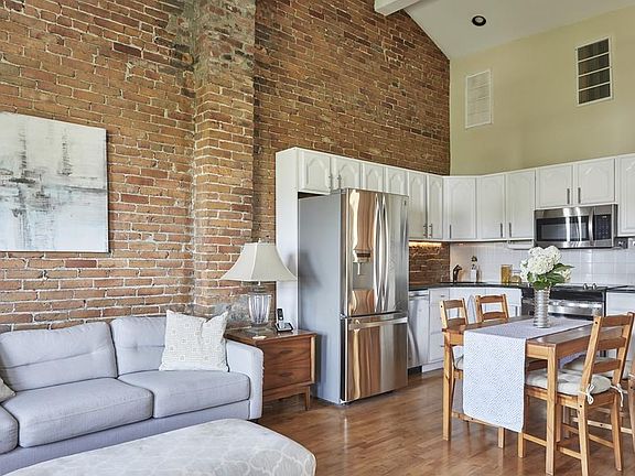 Penthouse condo perched atop a well maintained, turn of the century row house overlooks an abundant community garden and park across a mere block from bustling East Somerville. Dramatic, vaulted ceiling and exposed brick wall in the main living space provides a feeling of spaciousness. An L-shaped kitchen with granite countertops and SS appliances ensure home-cooked meals are something to look forward to. The bedrooms are set at opposite ends of the unit supporting privacy and accommodation. A fire escape is accessible through a door in the rear bedroom which allows for a breath of fresh air as well as added safety. In-unit laundry, exclusive-use basement storage, and a shared garden/patio add to the list of city-living conveniences. Easy access to 93 and 28 as well as Assembly Row and the Sullivan Station Orange Line T, with shopping and restaurants right out your door.