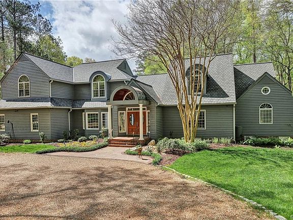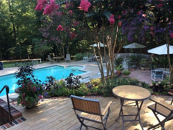 Located on a private 5+ acre lot And with public water and sewer, this meticulously maintained home offers luxurious entertainment possibilities and wonderful living space with its open floor plan and dramatic vaulted ceilings. Highlights include a Kitchen w/ custom birch cabinetry and quartz counter-tops. The gracious Living room has gas FP with granite surround and opens to a Sun Porch that overlooks the pool. Formal Dining w/ Bay window. The Master Suite has gas FP, heated floors, French doors that open to a private deck. En suite Master bath w/ handmade ceramic sinks & heated floor adjoins the custom Dressing room/Closest. The Study is Heart Pine w/ wall cabinets & shelves, a Sunroom & Huge Sun Porch w/ tempered glass removable panels for cooler seasons all on 1st floor. Upstairs is a second Master w/bath, 2 more bedrooms & a sitting room, a possible 5th bedroom, a huge Recreation room w/arched windows, cork floor & pine accents. Outside enjoy the heated pool (outdoor hot water shower), adobe terrace, koi pond, shade gardens, ferns, & crepe myrtles surrounded by private woods. This is a most inviting escape from the city yet only 10 minutes from UR. Truly One of a Kind.