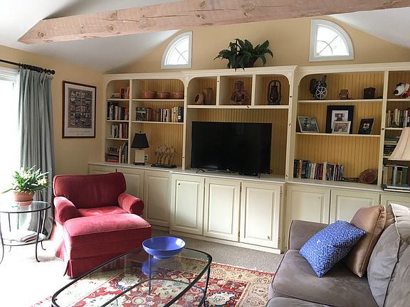 Waterfront home in Lake Waubeeka. Charming, light-filled, private, 2 bedroom home for sale in gated lake community. The sunken living room has a wall of custom cabinetry and a beamed, cathedral ceiling. A sliding glass door in the living room leads to the easily maintained synthetic boards deck that overlooks the lake. Perfect for entertaining or just enjoying some quiet time. Spend hours looking out a large picture window in the kitchen. The finished, heated lower level has a laundry room, office (or work out room or guest room) and storage area. A sliding glass door to the back yard provides more opportunity to spend time watching the lake and wooded area. Amenities include tennis and basketball courts, a playground, 2 beaches for swimming and boating, a dog park and hiking trails. Year round parties and events are held at the community house. Plentiful storage in the attic and unfinished part of the basement. This community is nestled in the woods but just minutes to Danbury Mall, Whole Foods, Ridgefield and I-84. Septic designed to accommodate a third bedroom.